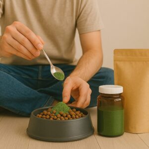 Suplemento natural à base de microalgas, com gostinho de mar e ação 4 em 1: imunoestimulante, anti-inflamatório, antioxidante e modulador intestinal. Mais saúde, vitalidade e bem-estar para o seu cão, com benefícios comprovados cientificamente.