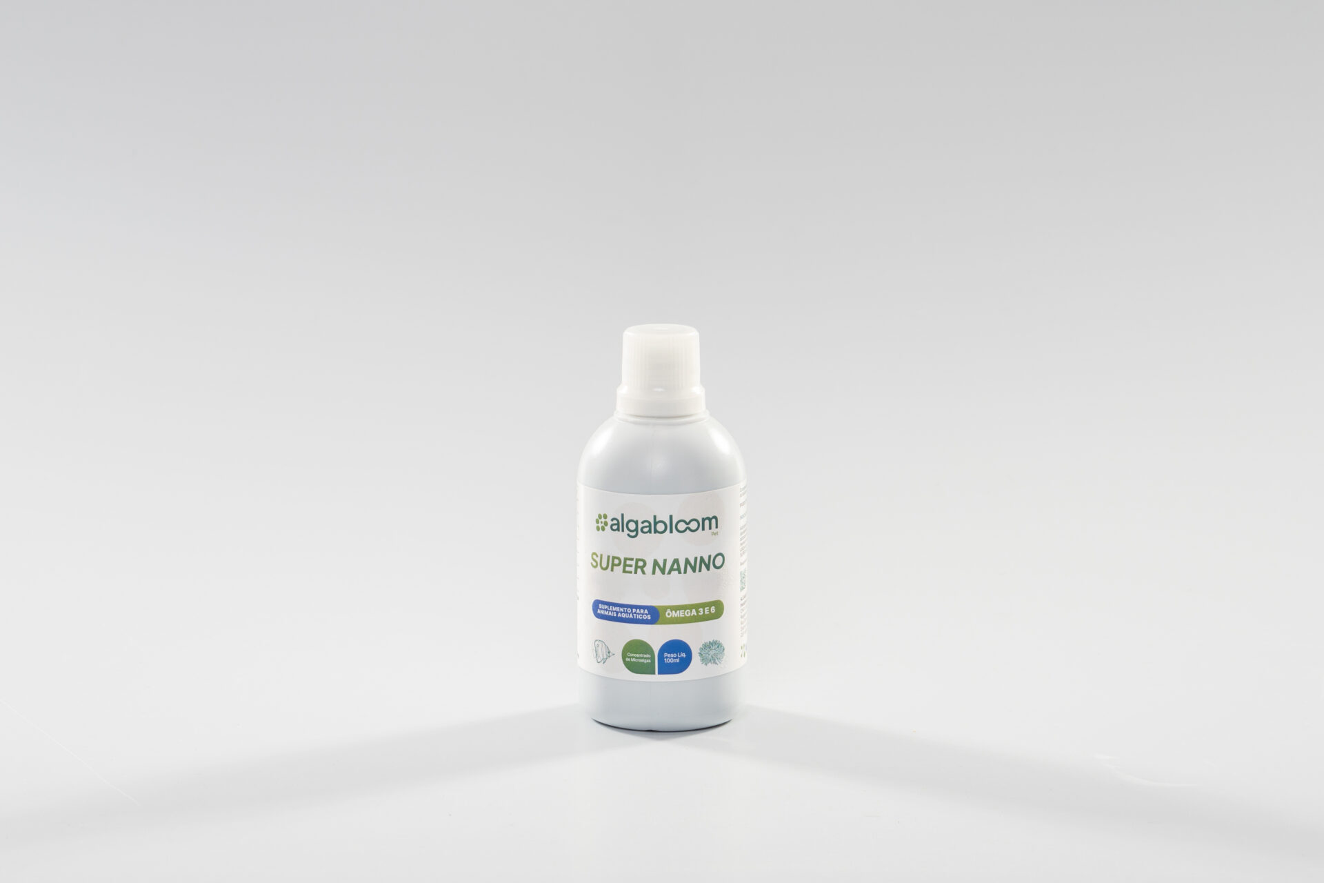 SUPER NANNO de 100ml, o suplemento de microalgas da Algabloom desenvolvido especialmente para aquários marinhos. Nutre corais, peixes ornamentais, camarões, anêmonas, tridacnas, moluscos e também o zooplâncton cultivado no sistema, como rotíferos, artêmias e copépodes. Rico em ômega 3 e 6, antioxidantes, aminoácidos, vitaminas e minerais, é um superalimento natural que fortalece o sistema imunológico, realça a coloração e estimula o crescimento saudável da microvida. Produzido com alta pureza e biossegurança, é ideal para aquaristas que cuidam do aquário com responsabilidade.